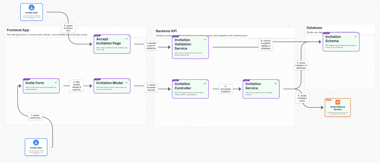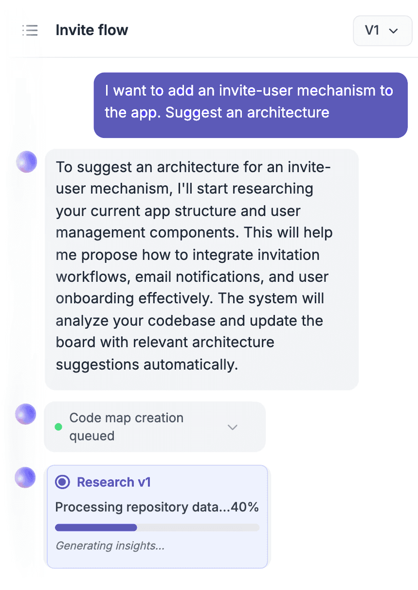 The system surfaces the plan, affected components, needed additions, and the logic behind each call.